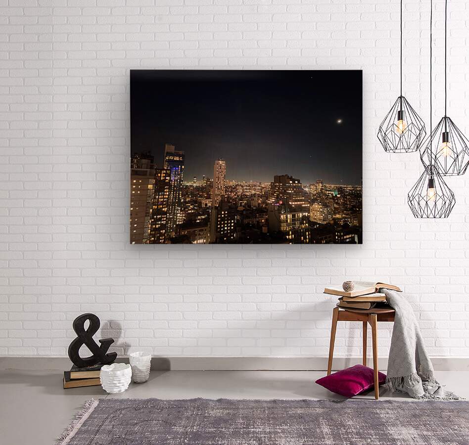 This image captures the stunning contrast of stillness and motion as the moon hangs over a glowing Manhattan skyline. It's a timeless celebration of the architectural heartbeat of the city. As wall art, it brings a sophisticated, moody ambiance perfect for modern interiors, offering both serenity and inspiration.
