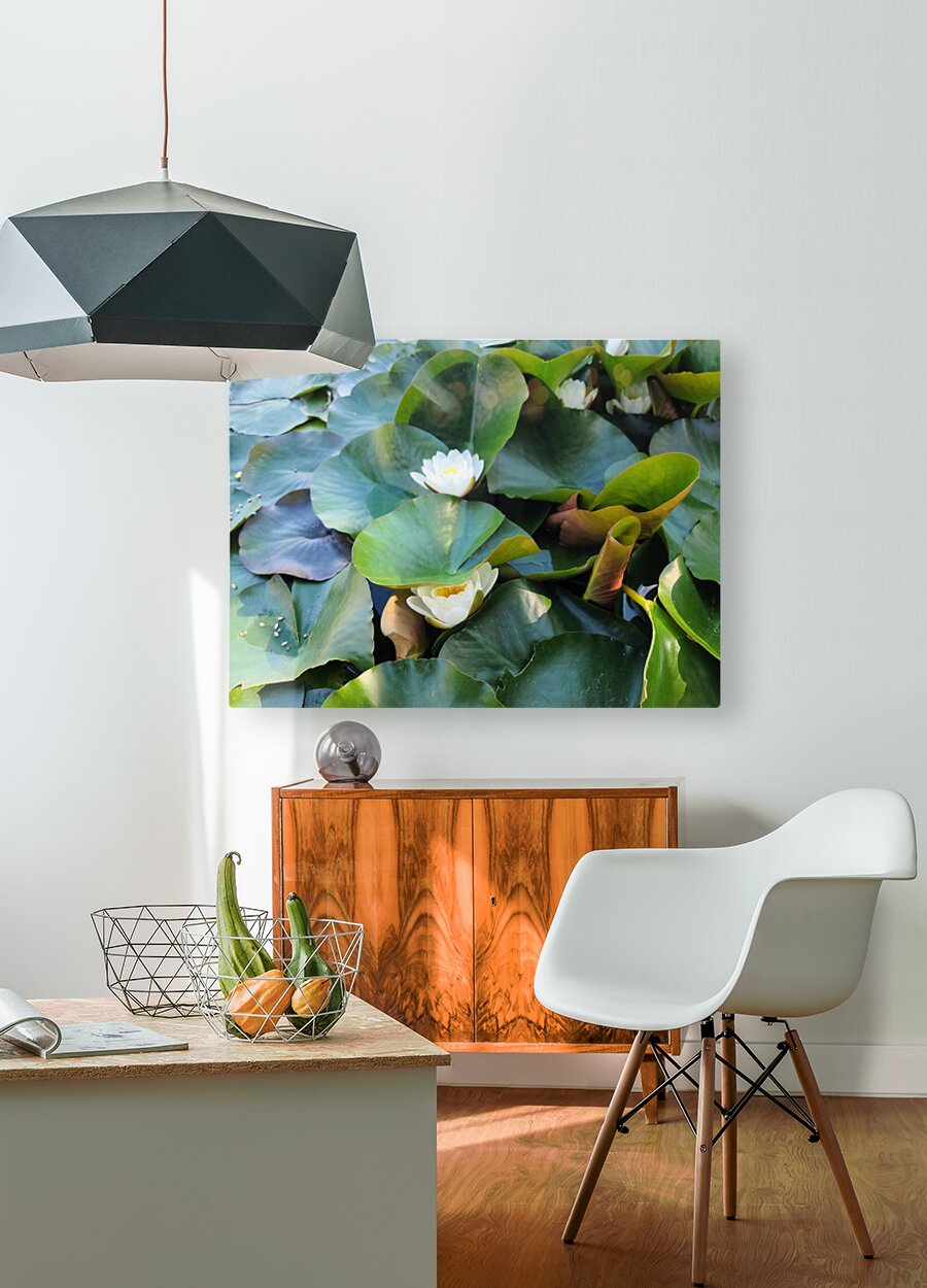 Water Lilly Collection. Nestled between lush green lily pads, this delicate white water lily unfurls its petals in silence. Captured at the golden cusp of morning, this photograph invites the viewer to notice the quiet elegance of water gardens, a microcosm of serenity and natural symmetry. As a wall piece this is a visual breath, a meditative pause in any space. It brings a touch of peaceful wilderness to urban environments and evokes the subtle rhythms of nature. Hang it where you need to be reminded that beauty often hides just below the surface.