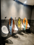 These urinals at the Barefoot Bar & Grill in San Diego at Paradise Point Resort & Spa provides privacy with surfboards as panels. This photograph capt...[+]