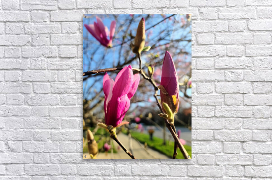 Magnolia Collection. This image poetically captures magnolia buds and a half-open bloom along a sunlit suburban walkway. The interaction between raw nature and a paved path tells a story of coexistence, emergence, and continuity. The composition juxtaposes the structured lines of human life with the unpredictable beauty of nature’s timing, drawing attention to the in-between moments when transformation begins. As wall decor, this photograph inspires viewers to embrace the "not yet" stages of life the moments where potential stirs beneath the surface. Its uplifting tone makes it especially powerful in transitional spaces, creative studios, or offices, where progress and patience are part of the journey. A daily nudge that something beautiful is always on its way.