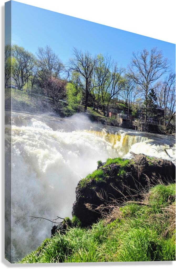 Paterson Great Falls Historic National Park New Jersey Collection. Here, the land inhales and exhales through water and light. Trees lean forward in soft communion with the cascade. The energy is felt more than heard a deep resonance from within the rock’s ancient ribs. This piece brings stillness in motion to any space. Ideal for rooms that seek an infusion of natural rhythm, it calms the overstimulated mind while inspiring the active soul. It's not just an image, it’s an ecosystem of emotion, captured in a single breath.