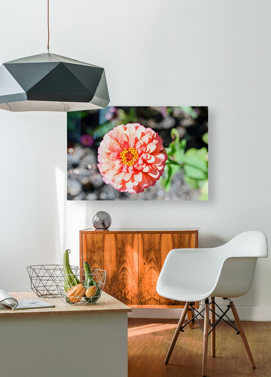 The sunlight chooses its favorite; a pink zinnia, wide open and glowing under its touch. The soft folds reflect the warmth of the day, echoing memories of garden strolls and laughter carried on warm breezes. This image captures not just a flower, but a moment where nature and light conspire to create calm. This artwork brings a comforting warmth into any space, it's a smile made visible. Ideal for entryways, bedrooms, or creative spaces, it transforms blank walls into invitations: to slow down, to appreciate the subtle, and to feel held by the light. In this flower, the everyday becomes extraordinary, and endlessly beautiful.