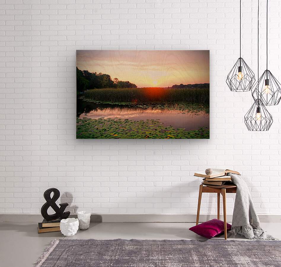 Sunrise Collection. In this breathtaking scene, the day's first light spills over a lily-laced wetland, igniting the sky in soft hues of pink, gold, and lavender. The water mirrors the awakening sky while delicate lily pads float silently, untouched. The reeds stand still like sentinels of peace, listening to the hushed whispers of nature's new beginning. This moment is not just the start of a day, but the unfolding of a story held in stillness and light. As wall art, this piece speaks of reflection, calm rebirth, and the profound beauty found in quiet spaces. It evokes an emotional pause, a daily invitation to begin again with gentleness and purpose. Ideal for spaces meant to center and ground, like meditation rooms, bedrooms, or retreats.