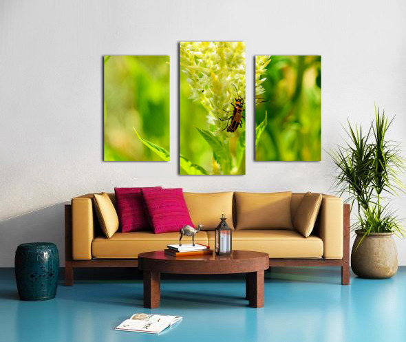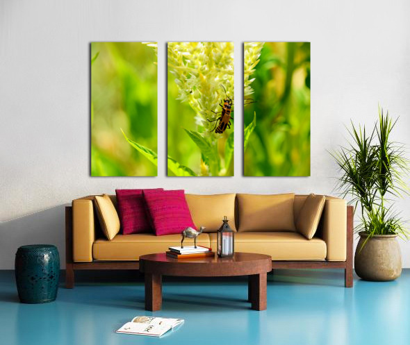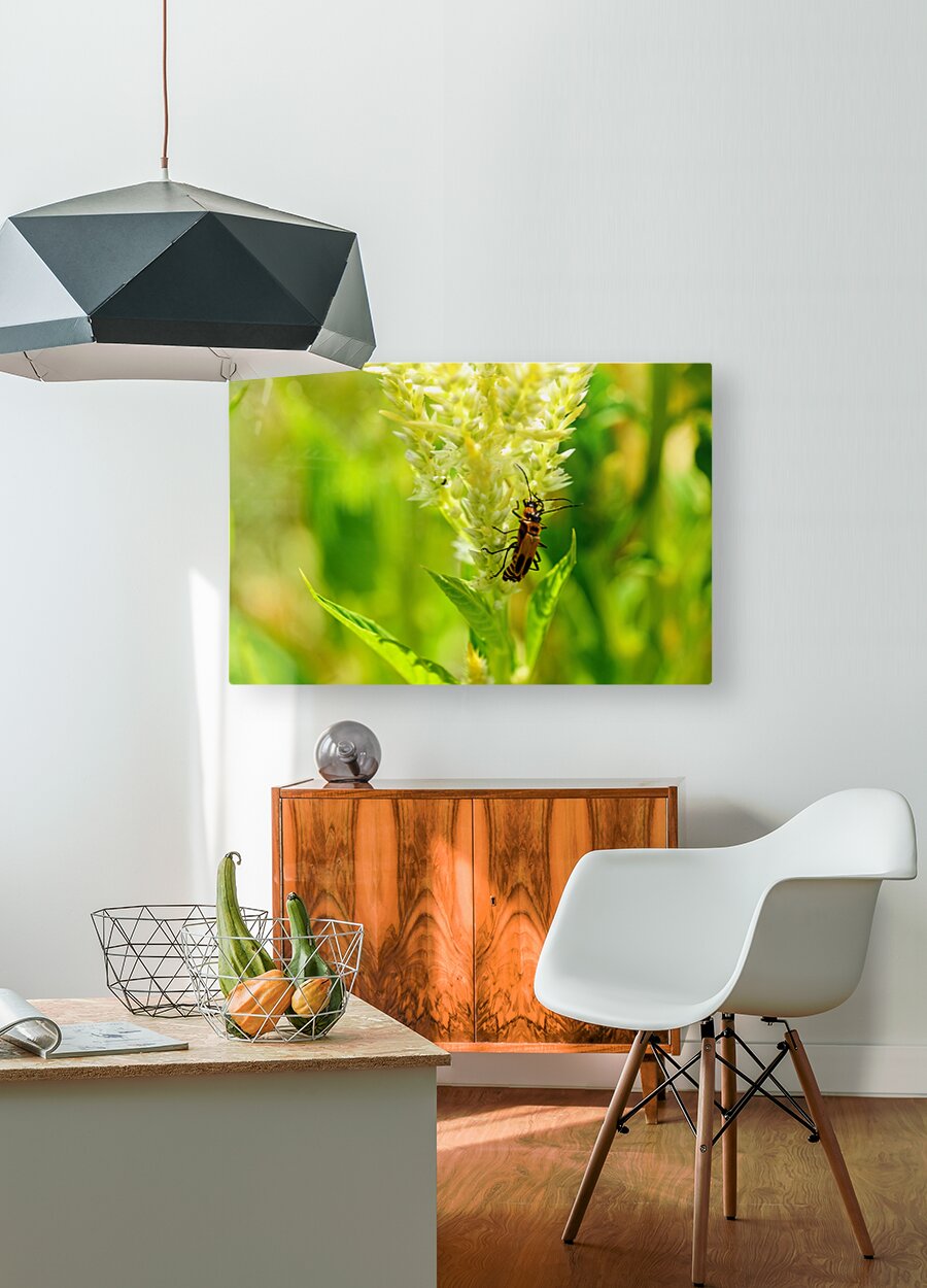 While fireflies are often imagined only under the veil of night, this image reveals one in the light a guardian of the garden’s quiet flame. Bathed in gold, the insect becomes both wild and mythic, as if it’s holding a spark borrowed from the sun. The plant, too, glows like a candle wick, alive, alert, and radiant. More than just decor, this piece is a meditation in motion. It transforms any wall into a story of strength in delicacy and magic in the mundane. It brings a touch of the surreal into grounded spaces a brilliant way to inspire curiosity and awe every day.