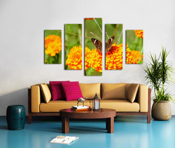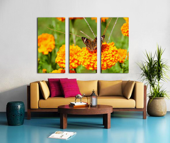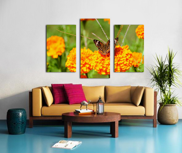 Buckeye Butterfly on Marigold: The Secret Life of Wings and Petals Canvas print