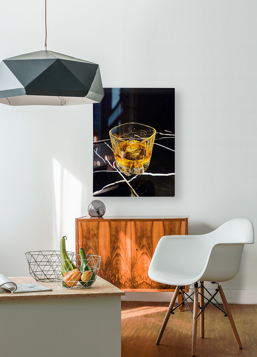 The glass traps gold like a cage made for light. Every facet bends the liquid, revealing fractured glimpses of warmth within. The marble surface adds coldness, creating a dichotomy that is both stark and sensual. Here, light doesn’t just reflect, it transforms. Hang this where shadows meet style. It’s a luxurious yet artistic expression of form and reflection — ideal for upscale lounges, whiskey bars, or contemporary living rooms. It provokes conversation without saying a word.