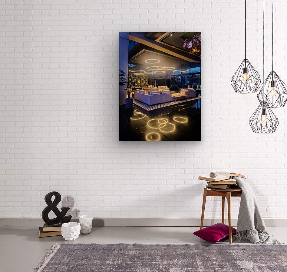Evokes a celestial calm, like walking into a designer’s vision of the solar system. Suspended lights form planetary rings, and their mirrored counterparts ripple below. The lounge is not just modern—it’s galactic in feel. A statement piece for those who see the universe in design. It transforms a blank wall into a silent constellation, grounding your space in both tranquility and curiosity.