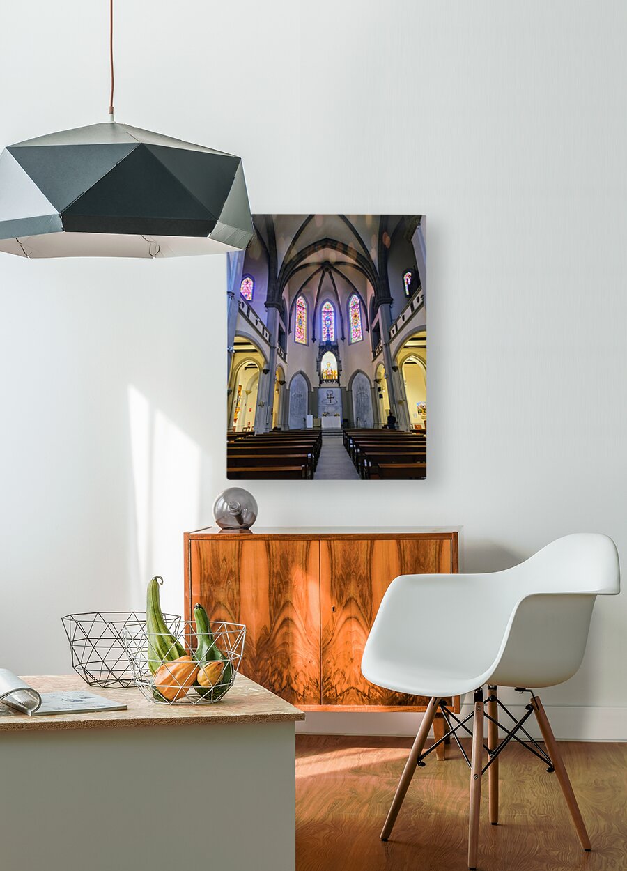 Step inside a moment frozen in reverence. This photograph captures the intimate grandeur of a cathedral where color pours from centuries-old stained glass windows and dances quietly on stone and pew. The gothic vaults draw the eye heavenward, while the illuminated altar glows like a portal to serenity. Every beam, every curve, every hue tells the story of time, craftsmanship, and worship. This piece embodies the essence of still spirituality. It’s not just a church—it’s a space that invites pause and presence. On your wall, it serves as a visual retreat, a reminder to seek light in structured silence, and to find transcendence in architecture. Ideal for meditation rooms, libraries, or anywhere deep stillness is welcome.