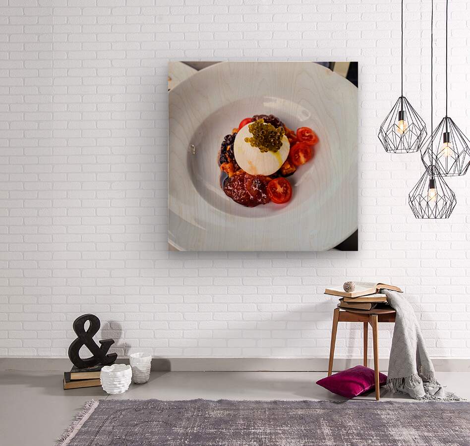 With its golden-hued caviar perched atop a pristine burrata, “Gilded Bite” is a portrait of edible luxury. Each element glistens with richness, from the dark fruit compote to the sunlit cherry tomatoes. This isn’t just food—it’s opulence on a plate. As wall decor, this image radiates taste, refinement, and ambition. Ideal for upscale restaurants, boutique hotels, or modern homes with a bold aesthetic, it elevates the culinary to the status of jewel-like art. This is a visual feast for those who savor the finer things in life.