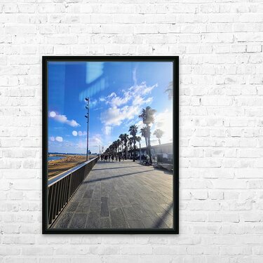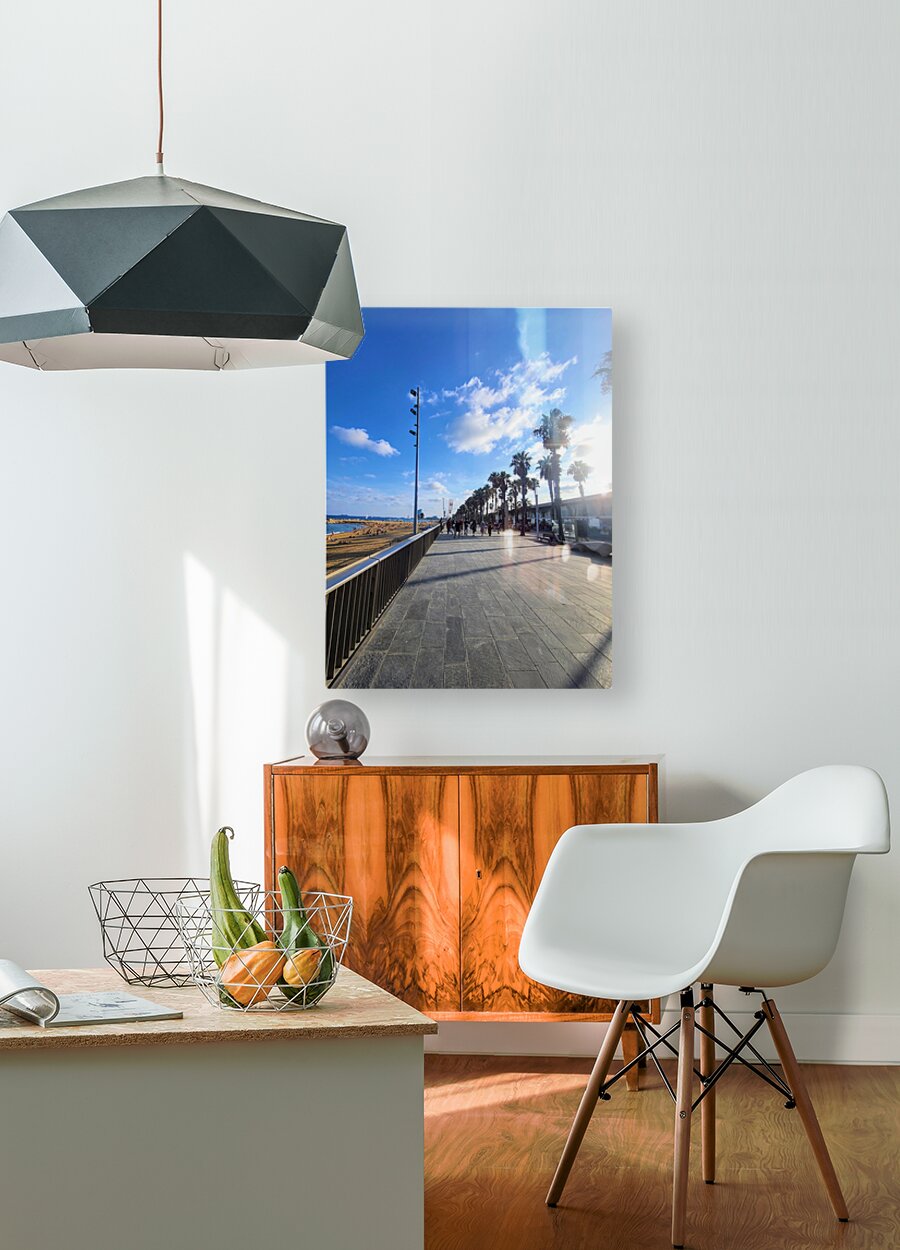 Barcelona Travel Collection. This photograph captures a quiet moment on the city’s coastal promenade, where golden sun meets stone under a vast sky. Palm trees sway like sentinels of calm, while figures in the distance echo movement without urgency. As a wall piece, it’s a daily reminder to take things slowly, breathe deeply, and follow the light—even in a busy world. Ideal for spaces that seek balance, reflection, and understated beauty.
