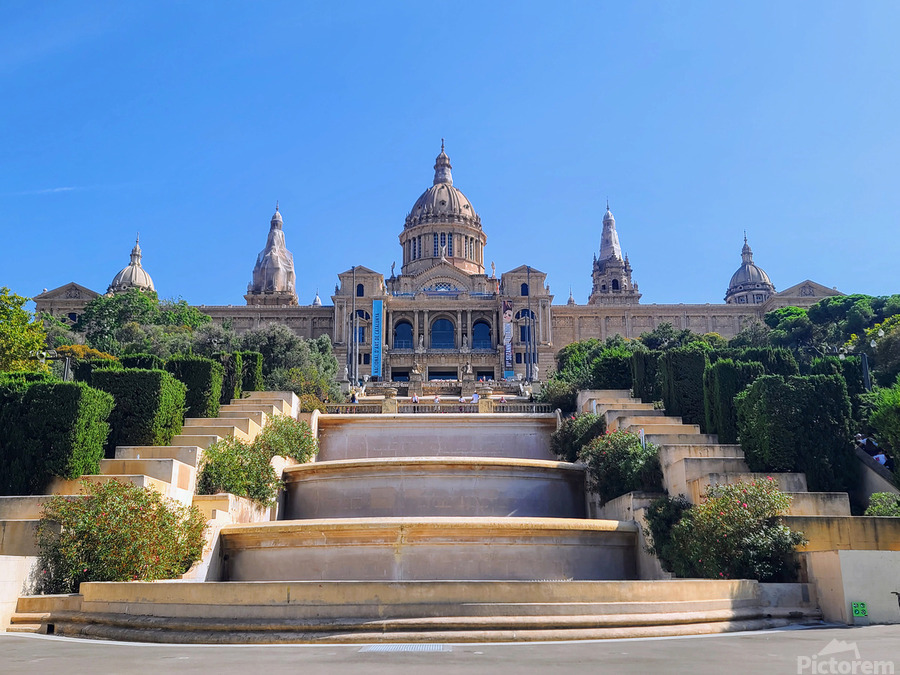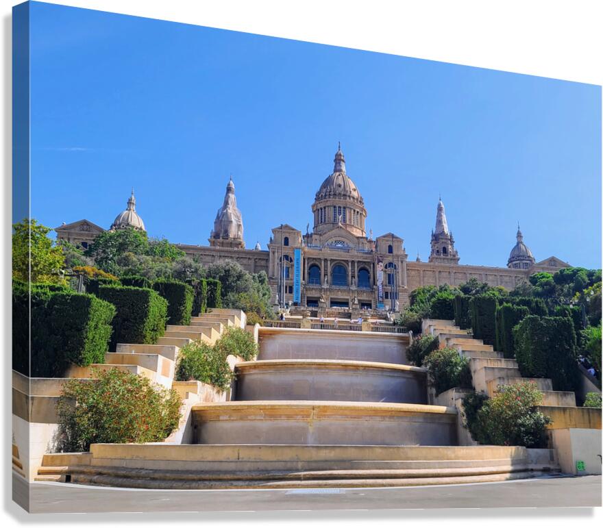 Bathed in sunlight, the golden steps leading to the Palau Nacional mimic a stairway to the past. This isn't just architecture it’s a timeline carved in stone. With cloudless blue skies cradling its domes, this structure reminds us that cultural excellence can be as awe-inspiring as nature. A slow climb into beauty. A snapshot of eternal Europe. For wall décor that evokes refined travel, educational depth, and architectural love, this piece is a window into another world. It radiates a historic calm and golden aspiration that uplifts every space from a formal dining room to a bright hallway or a cultural café wall.