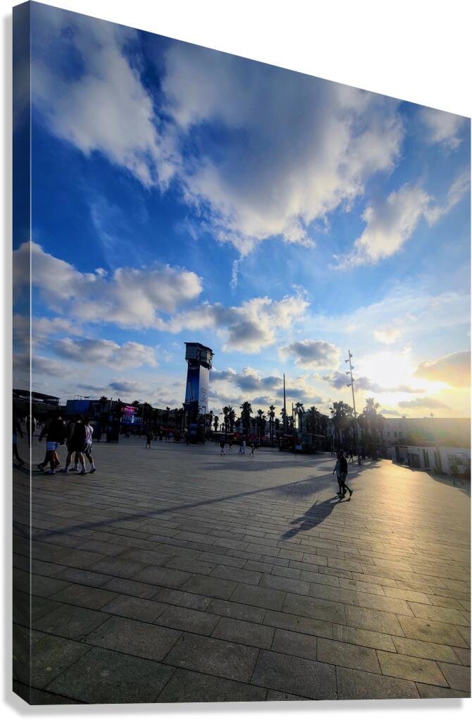 Barcelona Travel Collection. This was a walk along the beach opposite the water as the sun was setting. This striking scene captures the brief moment just before sunset, where the bustling energy of a city square softens under golden hues. Silhouetted figures stretch across glistening pavement, their shadows long and poetic, stretching toward the viewer. Above, a dynamic sky of cotton clouds rolls gently through fading blue, amplifying the stillness below. As a piece of wall art, Where Light Finds the Silence invites the viewer to pause to reflect on the quiet that exists even in crowded spaces. It's a reminder that peace isn't always about solitude it can bloom right in the middle of movement, between footfalls, beneath a vast sky. Ideal for living rooms, libraries, or open office areas where stillness meets creativity.