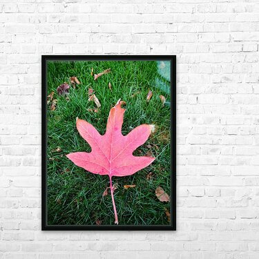 Colors of Fall Collection. A playful take on nature's simplicity, "Leaf Me on the Grass" captures a vivid red leaf resting peacefully on a fresh green bed. It’s a charming reminder that beauty doesn’t always shout—sometimes, it just falls gently and waits to be noticed. Perfect for cozy, earthy, or nature-themed spaces that crave a touch of calm and color.