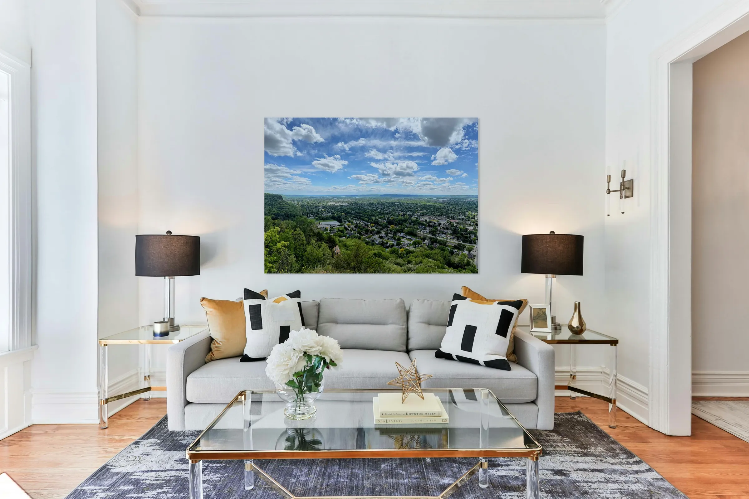 There’s something timeless about looking down on the streets you once walked. This view captures the heart of a town full of life and memory, from the winding river to the patchwork of homes. A perfect piece for anyone who cherishes hometown roots and quiet growth.