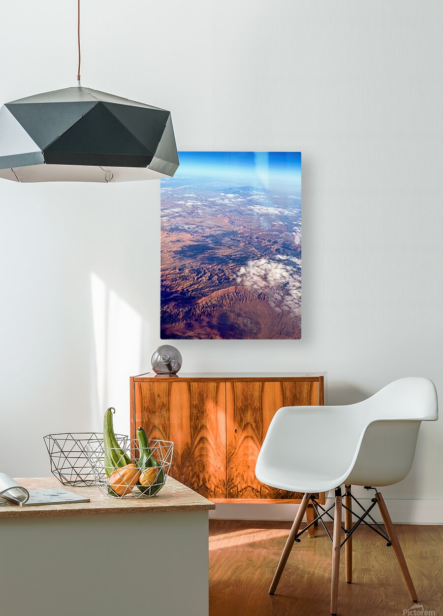 A stunning aerial portrait that reveals the Colorado River in all its quiet majesty, carving ancient paths across the high desert of the American Southwest. Shot from above the clouds, this image brings a painterly quality to reality: the soft blush of canyon shadows, the rough-hewn ridges like brushstrokes of erosion, and the gentle sweep of cloud cover casting moving patches of light across the land. As a piece of wall art, it brings scale, perspective, and awe into any room. It’s perfect for spaces that value stillness, discovery, and connection to the Earth’s enduring rhythms. Ideal for offices, modern living spaces, or rustic interiors that celebrate the organic and timeless.