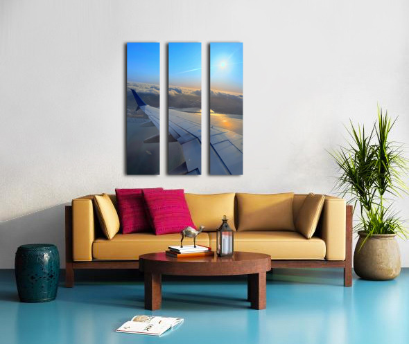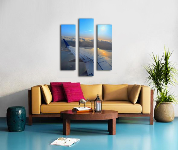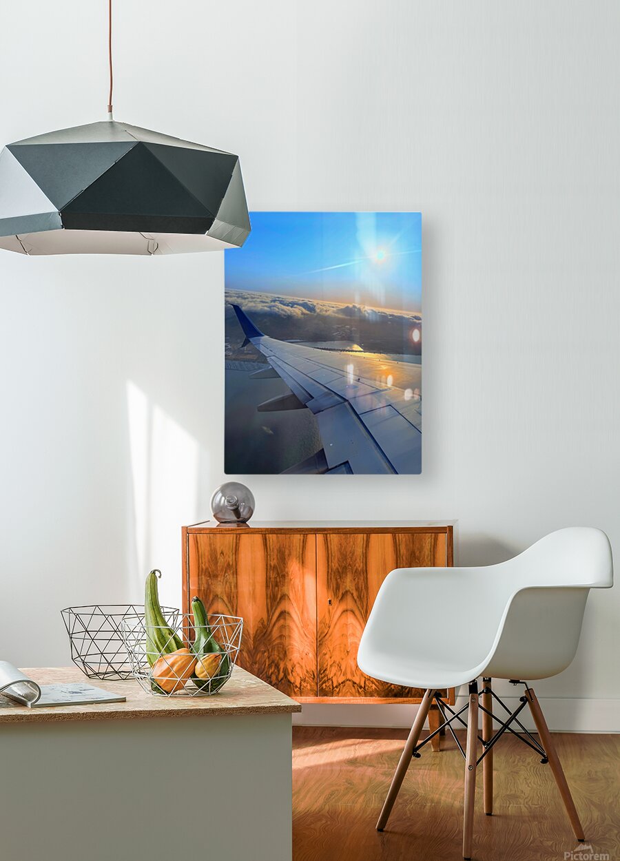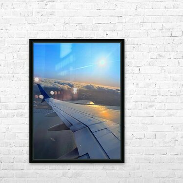 This is not just a flight—it’s a moment above the world. The city rests under clouds like a hidden kingdom, wrapped in mist. The sun stretches long shadows across the wing, painting a story of solitude and wonder. Ideal for contemplative spaces, or as a soft focal point in minimal interiors.