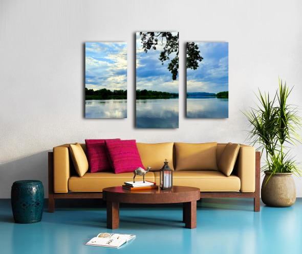A stretch of water carries the weight of clouds above, veins of light and shade coursing between them. Trees rest at the edges, letting nature breathe in rhythmic symmetry. The sky speaks, but gently, like a lullaby only the patient hear. This piece brings a soulful balance to your space, aligning head and heart through the serene geometry of nature.