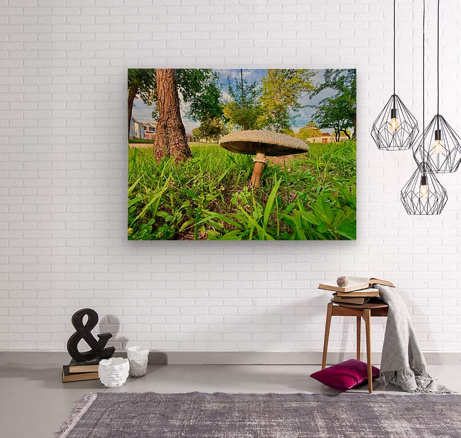 In this wide-angle capture, a solitary mushroom rises confidently amidst the lush, dew-kissed grass, framed by suburban trees and filtered morning sunlight. This contrast between structured urban life and unstructured nature is where serenity meets subtle rebellion. This artwork carries a peaceful yet symbolic message, that nature endures in all corners of our world. Hanging this piece invites viewers to reflect on resilience, quiet strength, and the gentle encroachment of beauty in even the most developed places.