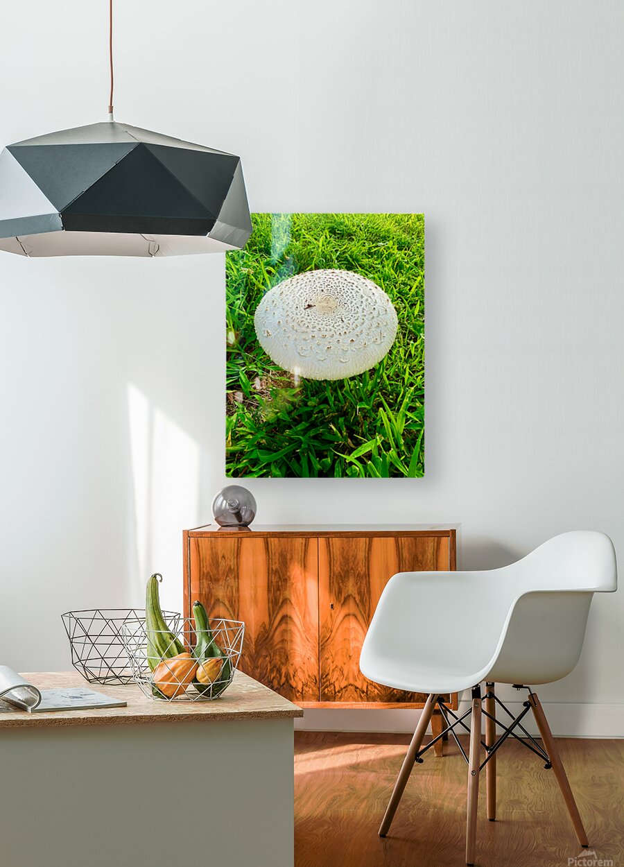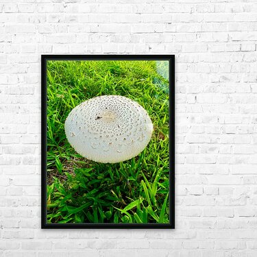 From directly above, this mushroom's cap becomes a tapestry of circular patterns and radial symmetry. Its spotted and textured surface recalls mandalas or celestial bodies, bridging earthly form with cosmic design. A visual experience of harmony and imperfection, nature's fingerprint is captured in rich detail. This piece invites quiet introspection, much like a visual mantra. Hung in a space dedicated to reflection, yoga, or study, it speaks to the unspoken order that guides natural life. A reminder that even the smallest living things hold a design far greater than the eye first sees.