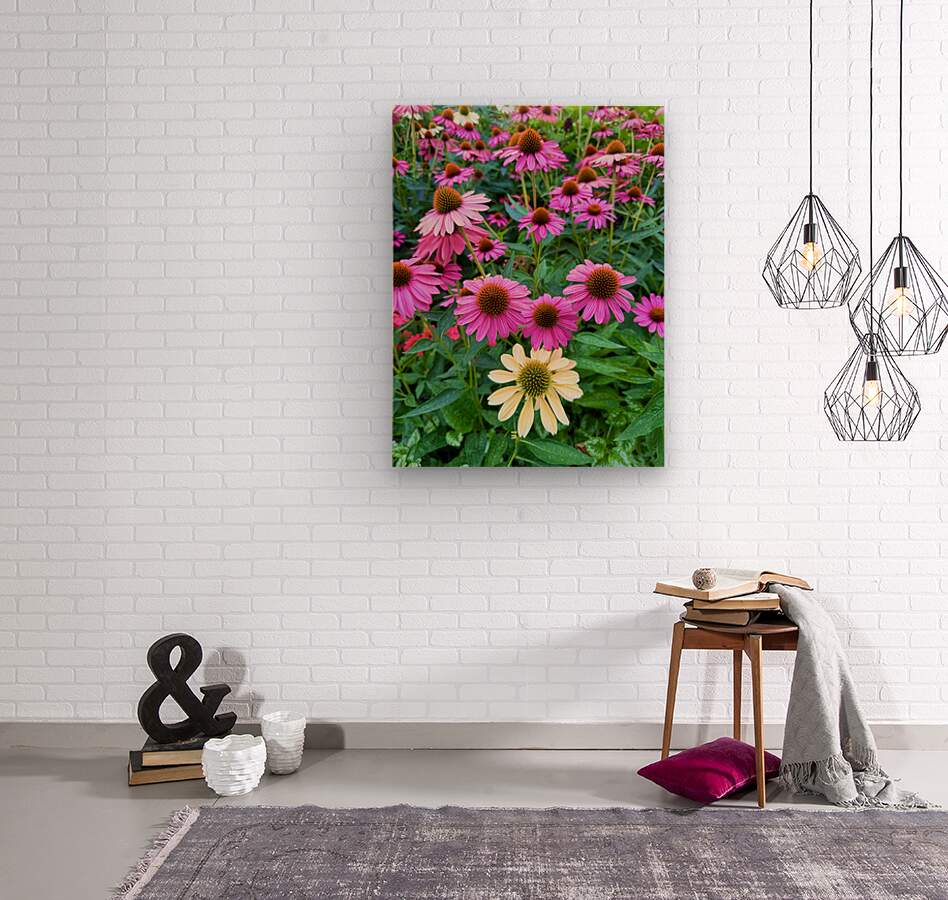 Portrays a flourishing group of Echinacea blooms, each unique, but forming a beautifully coherent whole. This image symbolizes strength in numbers, harmony in nature, and the richness of community. The tightly packed blooms and rich green backdrop make it an ideal piece for interiors that celebrate collaboration, inclusiveness, and beauty in shared existence.