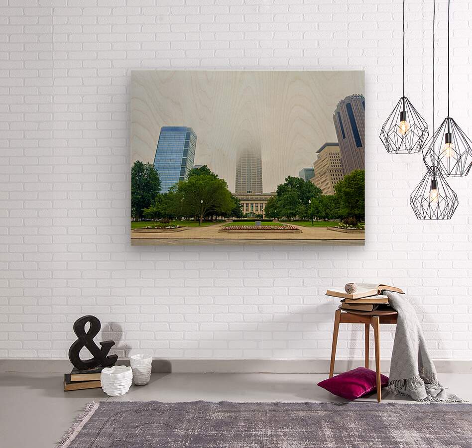 Evokes the surreal calm of fog-shrouded architecture. This piece speaks to the mystery and scale of cities, serving as a powerful visual for office walls, lobbies, or minimalist interiors.