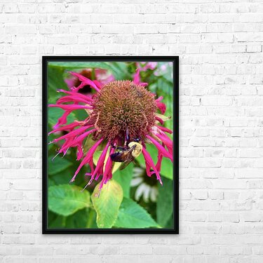 Freezes a critical instant of survival and sustainability. The bold reds and lush greens frame a moment of connection between species, ephemeral yet essential. This close-up study invites the viewer to witness nature’s choreography: the bee guided by instinct, the flower offering its gift. As wall art, it reminds us that life’s most beautiful scenes often come from the smallest, most meaningful encounters. A perfect piece for mindful interiors, educators, or pollinator advocates.