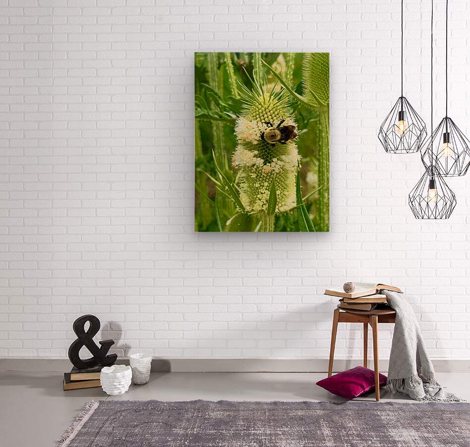 This macro shot reveals a bee mid-pollination as it navigates the white crown of a blooming teasel cone. Every fine hair, spike, and petal is rendered with clarity, elevating the scene into a natural sculpture. As wall art, this piece conveys a sense of mindfulness, detail, and silent industry. It reminds us that great beauty exists in the small and unseen, in the quiet work that sustains life. Hanging this artwork brings both precision and peace into your space, making it a stunning fit for study areas, creative workspaces, or any place that honors observation and contemplation.