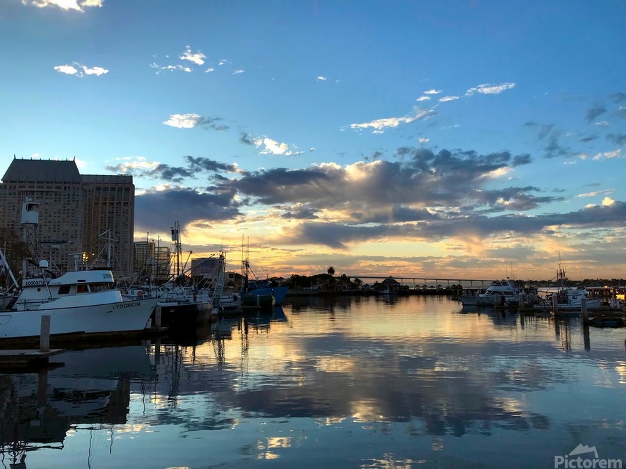 Part of the Serenely San Diego collection, this picture was taken in the harbor close to downtown San Diego where I had attended a conference. The calm seascape will take your breath away.