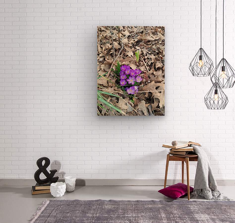 Blooms of Joy Collection. This was taken on the 1st of March along the sidewalks of downtown Indianapolis when the weather was unusually nice at 70 degrees. This image is a symbol of renewal and captures the quiet strength of spring as delicate purple crocuses break through last year’s fallen leaves. As wall art, it speaks to resilience and the beauty of beginnings.