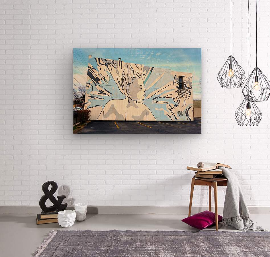 This mural was painted on the entire side of a building on Mass Ave. This mural celebrates the power of breath and imagination, as the figure releases waves of energy into the world. The light hues create a sense of peace, while the bold lines add strength and determination. As wall decor, it symbolizes renewal and creative expansion, making it ideal for spaces that aim to inspire motivation, growth, and artistic appreciation.