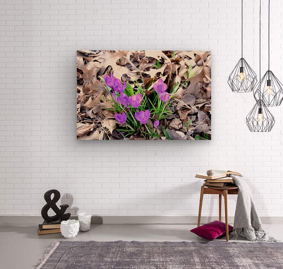 Blooms of Joy Collection. This piece perfectly encapsulates the scene of purple crocuses emerging through winter’s fallen leaves. Crocuses are amon...[+]
