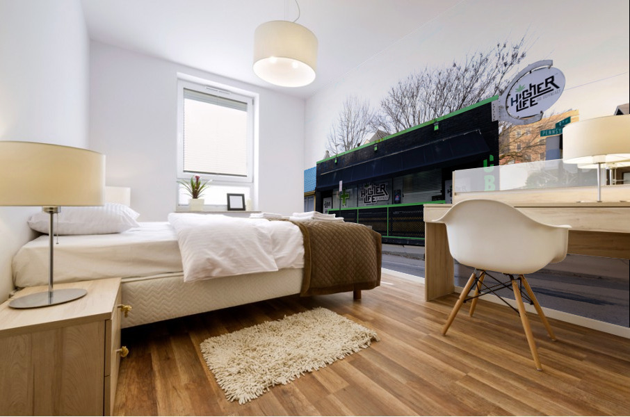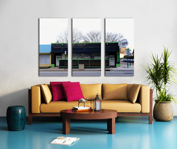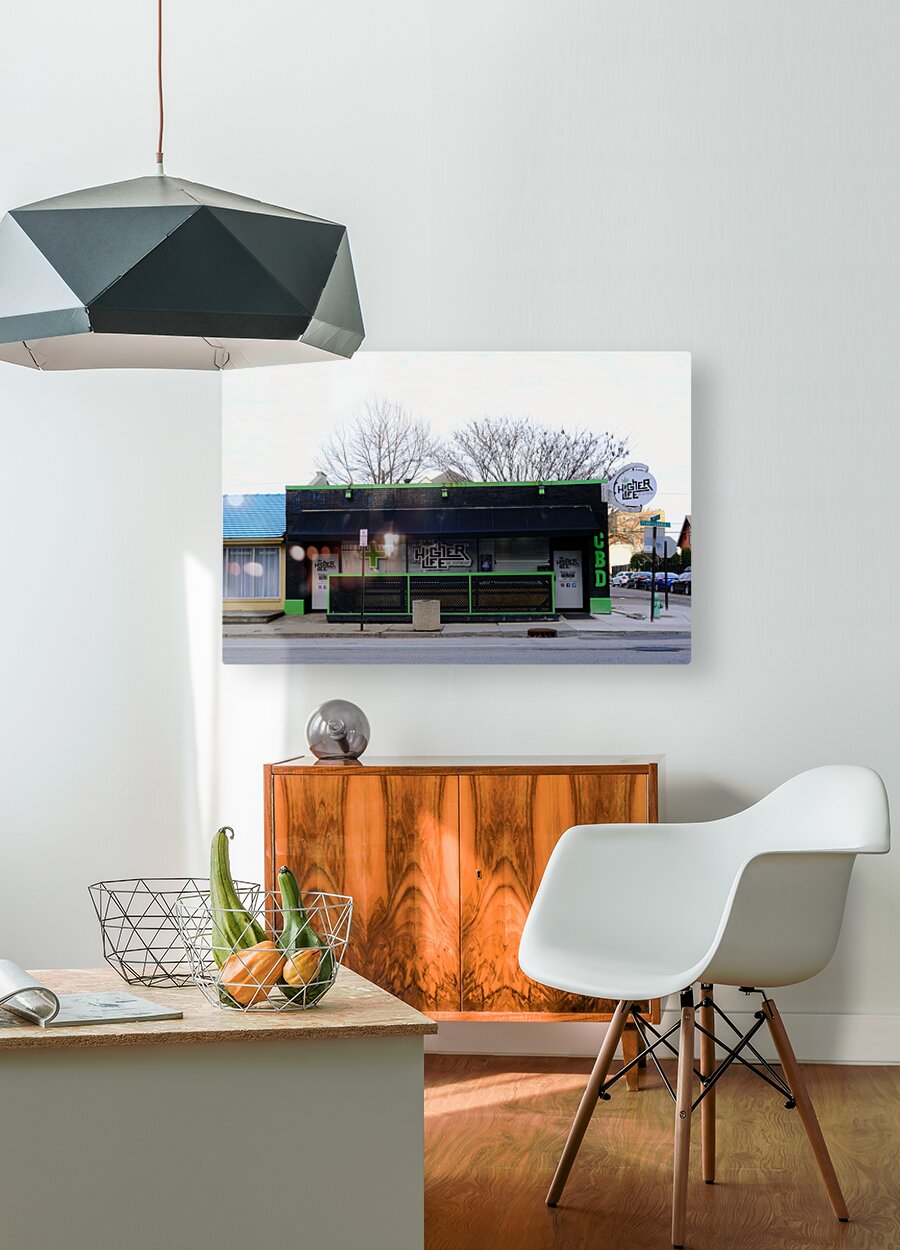 This vivid photo captures the vibrant tension between revitalization and street culture. The bold black building outlined in neon green sits confidently at a quiet intersection, hinting at stories just beneath the surface conversations, change, resilience. As wall art, it invites dialogue about the evolution of neighborhoods and the entrepreneurial pulse that fuels modern urban spaces. Ideal for home offices, modern lofts, or gallery walls needing a pop of grit and energy.