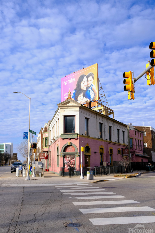 This restaurant located at an intersection of Pennsylvania Avenue in Indianapolis resembles the Flatiron Building of Manhattan. The composition evokes a film still, complete with open skies and a sense of quiet anticipation. It’s a portrait of a city moment that feels both paused and ongoing. Hang this in any space where you want to encourage reflection and slow appreciation of detail.