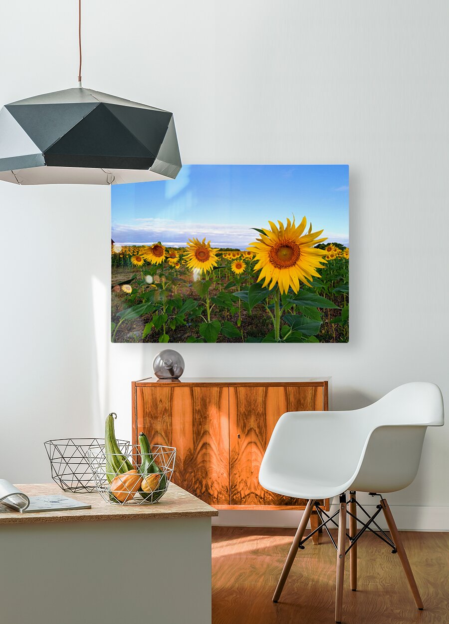 Sunflower Collection. Came across the sunflower farm on a road trip in 2023 in Indiana. The field of sunflowers was like a carpet of sunshine! This image draws you into the strength and individuality of a single sunflower standing confidently at the front of a sunlit field. Set against a serene sky brushed with soft clouds, this image evokes confidence, clarity, and presence. Ideal for spaces that benefit from both visual brightness and emotional warmth, this wall art piece celebrates the power of individuality and the beauty of simply standing tall.