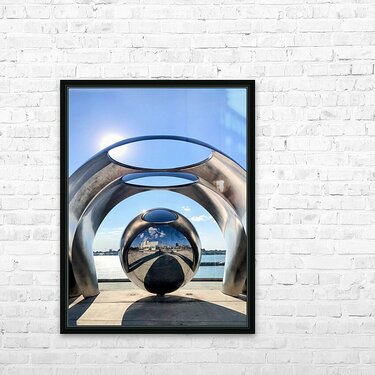 This spherical sculpture by the river walk in Baton Rouge is a beautiful public art piece worth checking out. Much like "The Bean" in Chicago, you can see your reflection in the sphere. Equal parts industrial marvel and spiritual symbol, this image embodies calm within complexity. The orb, suspended like a planet between rings, reflects not only the world but the self, inviting reflection in every sense. The artwork’s position beside water adds fluidity to the otherwise stark material. When placed in a modern home or creative office, it serves as both visual anchor and philosophical prompt.