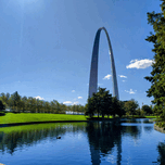 Driving to Dallas from the Midwest along Route 66, one of the stops worth pulling over for is the Gateway Arch. Gateway Arch Collection. This photo captures the Gateway Arch mirrored beautifully in a tranquil pond, symbolizing reflection and aspiration. As wall art, it evokes serenity and contemplation, perfect for spaces where focus and calm are valued.