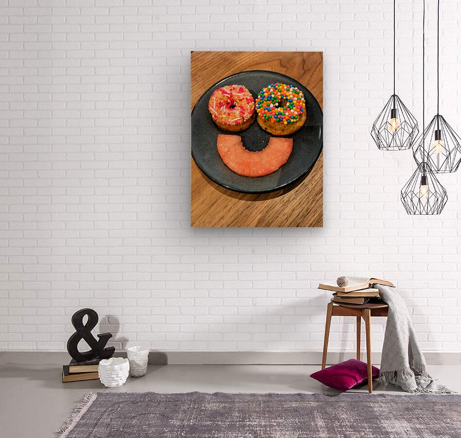 An image that captures the sweet side of optimism, this food arrangement brings a smile to your wall, literally. With two delightfully topped donuts f...[+]