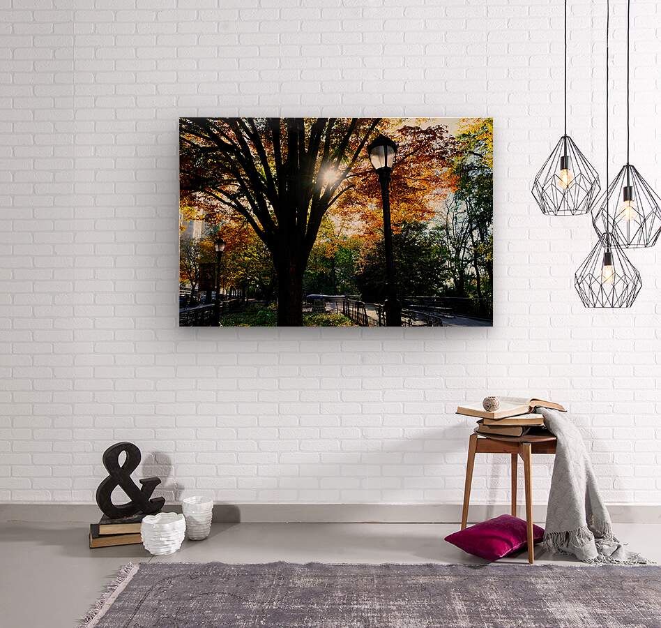 Riverside Park Collection. This serene and thoughtful image transports the viewer into a peaceful moment along a tree-lined path in Riverside Park, where autumn leaves form a glowing canopy overhead. The scene is perfectly balanced between nature’s warm hues and the gentle geometry of the urban design—benches, iron railings, and walkways all subtly guide the eye through the composition. This artwork brings calm, nostalgia, and warmth into any space. It speaks to the quiet magic of city parks, where life slows and reflection is welcomed. Ideal as a centerpiece in a hallway, office, or wellness space, it offers daily serenity through rich natural tones and classic structure.