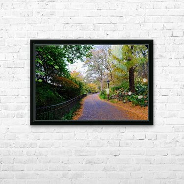 Fall in New York City is both romantic and beautiful as the leaves change colors. Central Park Collection. This photograph captures the quiet elegance of an autumn path winding through Central Park. Lined with golden leaves and framed by trees in transition, the scene evokes a sense of serenity and reflection. As wall art, Autumn Stroll brings a calming natural rhythm to your space, perfect for invoking a peaceful, seasonal ambiance in any room.