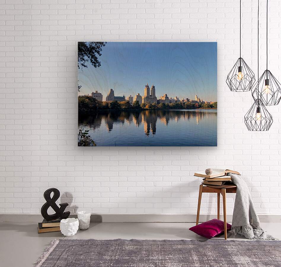 Central Park Reservoir Panoramic Skyline Northview. Central Park Collection. A crisp morning presents Manhattan’s skyline in perfect clarity, mirrored by the calm waters of Central Park’s reservoir. Ideal for spaces seeking elegance and tranquility.