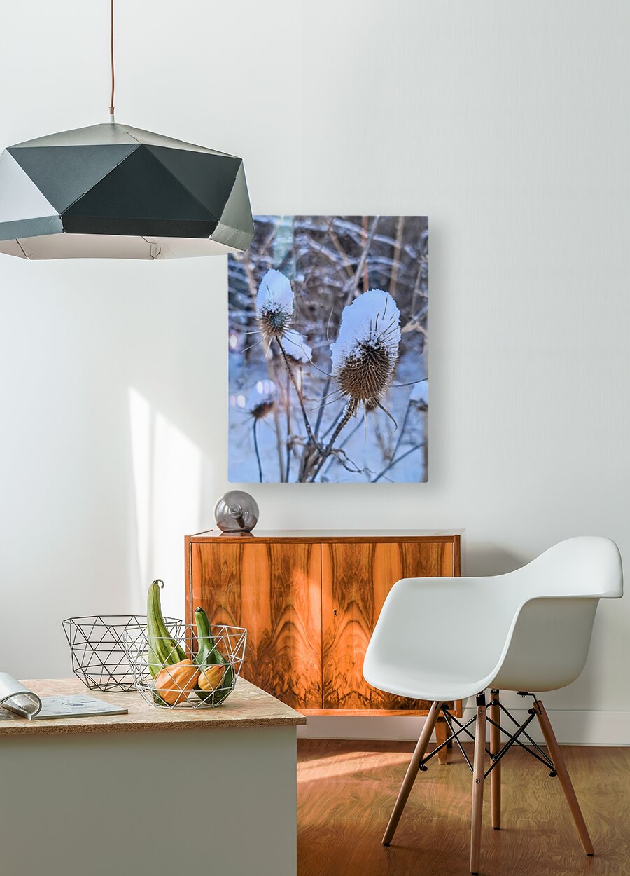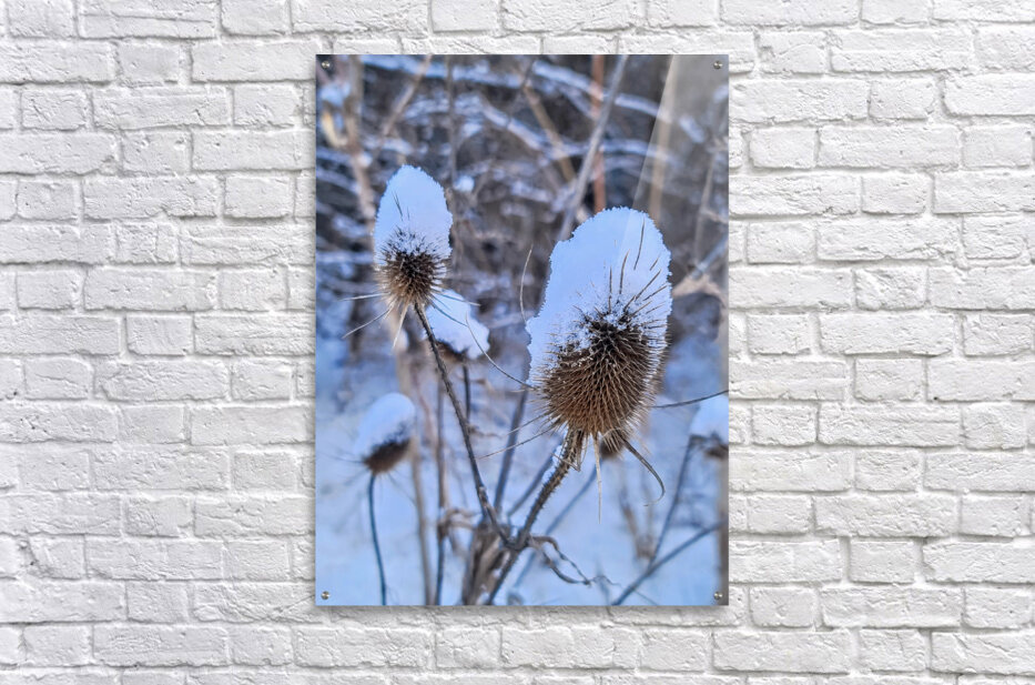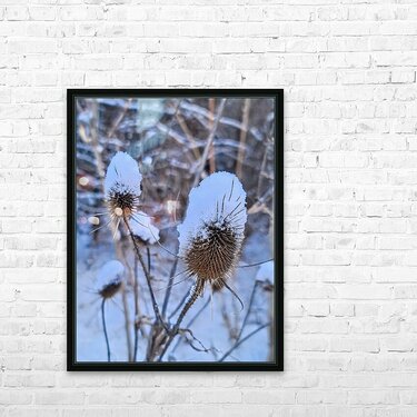 Came across this snow-covered thistle half-covered by the fresh snow in the middle of January 2024. Snow gently resting on spiny thistle heads embodies the quiet power of stillness in this serene winter image. Ideal for minimalist or rustic interiors, this artwork captures nature's pause, a reminder of the grace and strength found in moments of dormancy.