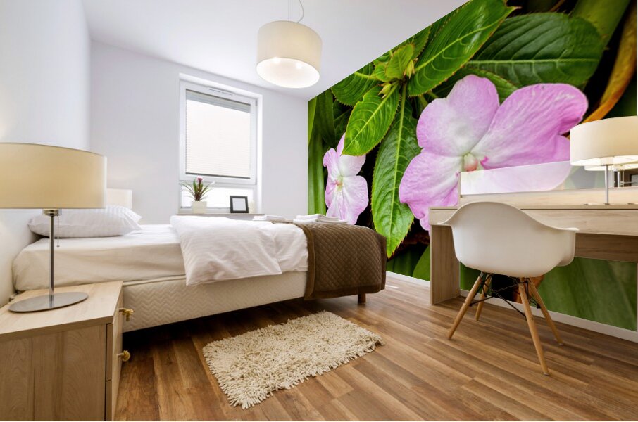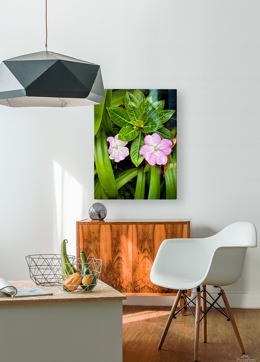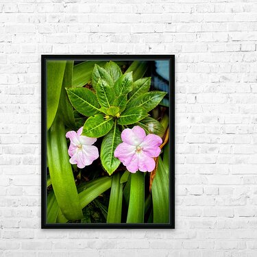 Side by side, these twin Impatiens bloom with quiet harmony—mirroring one another while grounded in a shared nest of lush foliage. It celebrates the simple beauty of connection, symmetry, and presence. Each petal reflects the other in form and tone, like a visual whisper between companions. Perfect for spaces focused on relationships or duality—bedroom walls, couple’s spaces, or mindfulness nooks—this piece brings balance and soft emotional resonance to any environment.