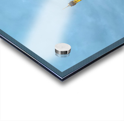 Impression sur acrylique avec entretoises ( cylindres métalliques )