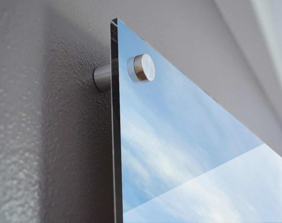 Impression sur acrylique avec entretoises ( cylindres métalliques )
