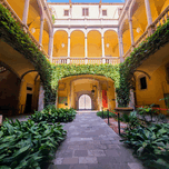 Bask in the serene poetry of this ivy-laced courtyard nestled within the sun-drenched architecture of a forgotten era. The arches glow in amber tones,...[+]