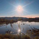 Morning sunrise during a jog in La Crosse. Wisconsin Collection-A captivating capture of the sun beaming over a peaceful wetland landscape, casting a...[+]