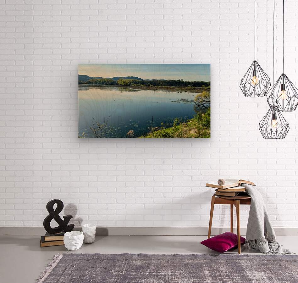ABOUT THIS ARTWORK: SERENE LAKESIDE VIEW WITH FOREST AND HILLS