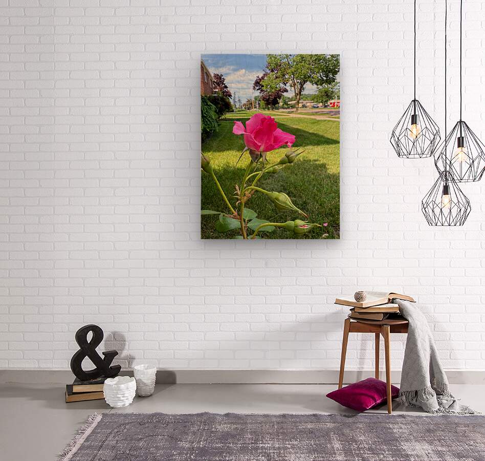 You can almost hear it the wind brushing through the grass, rustling this rose’s fresh petals. She leans slightly, not in surrender, but in dance. A moment captured where earth meets sky and nature listens. A contemplative image meant to bring mindfulness into your space. Use this in a meditation area, therapist’s office, or reading corner anywhere peace and presence are desired. It reminds us to lean with grace and respond with beauty.