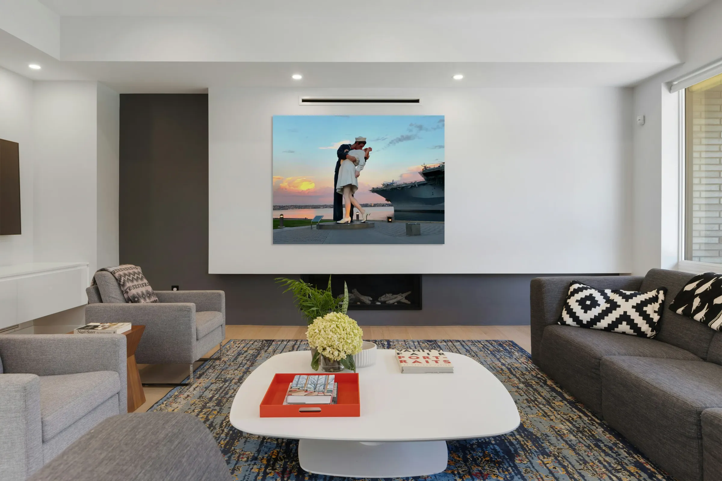 Part of the Serenely San Diego collection, this symbolic "Kiss" giant statue stands in the harbor next to the USS Midway Museum. The calm seascape will take your breath away.