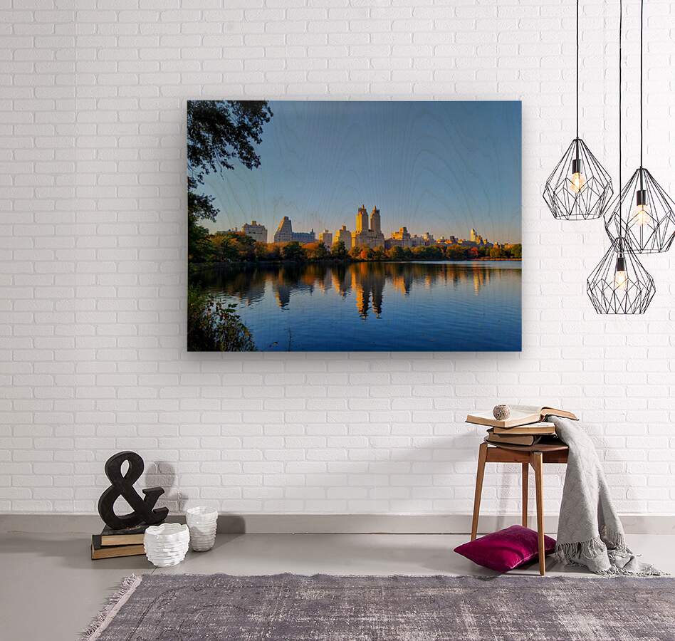 Central Park Reservoir Panoramic Skyline Northview. Central Park Collection. Blending still water with striking architecture, this piece portrays Central Park as a sanctuary nestled within one of the world’s busiest cities. The reflections enhance its soothing quality, making it a perfect print to inspire reflection and calm in any urban or professional setting.